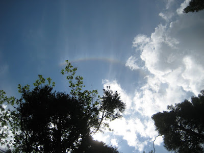 When I was prowling around looking to see if the Tanager was still close by, I saw a little rainbow directly overhead. I stretched out on the ground to take the picture.